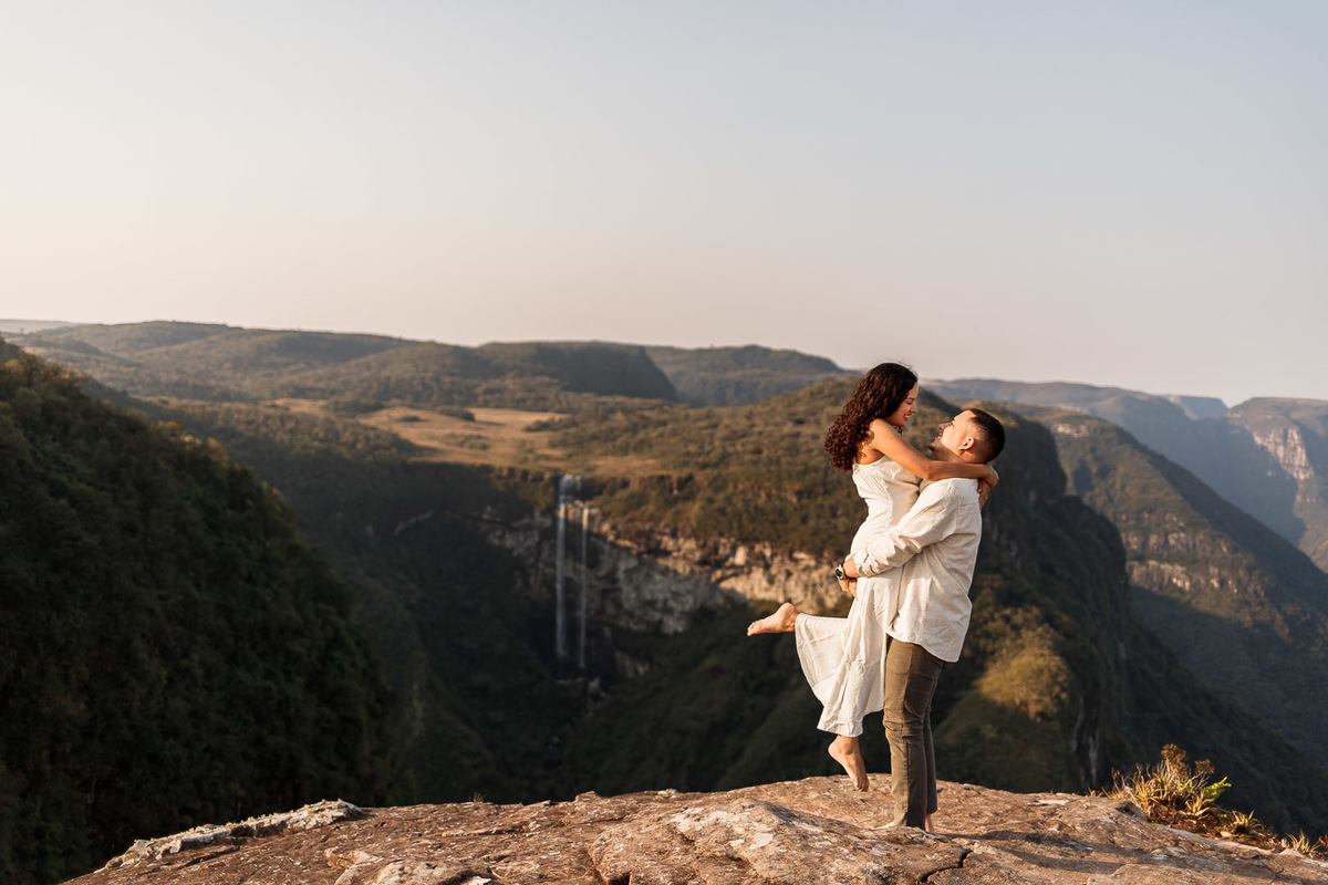 ensaio casal pré wedding casamento serra índios coroados praia grande sc cânion canyons pôr do sol 85mm f1.8