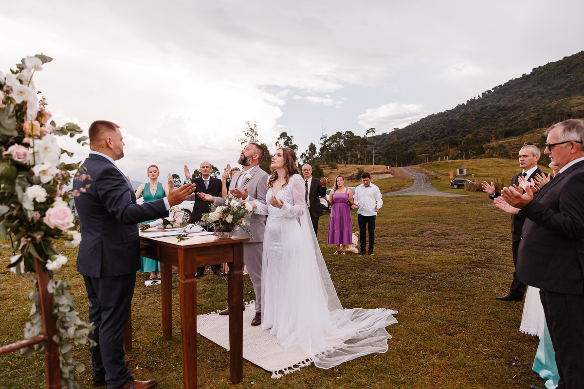 Tivemos o prazer de registrar o casamento da Cheila e do Ezequiel. Foi uma linda cerimônia ao ar livre. Foi uma cerimônia muito emocionante! Foi o amigo do Ezequiel que fez a cerimônia. Foi uma cerimônia intimista somente com os amigos mais próximo do casal. Foi um dia muito feliz cheio de emoções! Somos muito gratos por estar nesse lindo casamento e registrar o amor da Cheila e do Ezequiel. Que eles sejam muito felizes!