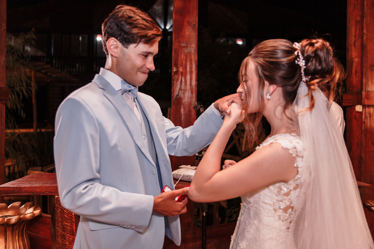 Ficamos muito felizes de eternizar em fotos o casamento desse casal querido!Foi uma cerimônia muito emocionante aonde o pai do noivo que fez o discurso. As fotos retratam a emoção e a alegria do casal. O Franks fez uma música para a Leticía. Foi lindo presenciar e poder registrar em fotos esse dia tão importante na vida deles. Desejamos toda felicidade para o casal nessa nova etapa na vida deles.